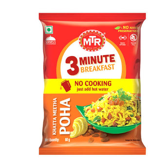 MTR Khatta Meetha Poha - 160g is a unique blend of sweet and sour flavors, perfect for a quick and light breakfast. Made with premium-grade ingredients, it is easy to prepare and delicious to enjoy. A nutritious breakfast cereal, each 160g pack contains essential vitamins to start your day right.