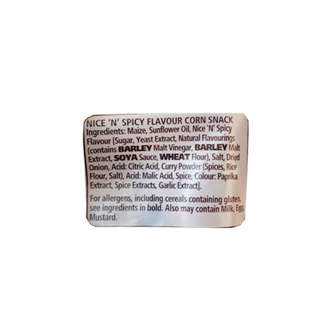 Nik Naks Nice 'N' Spicy delivers bold, fiery flavour in every bite. These iconic crispy corn snacks pack a punch with their signature spicy seasoning that keeps you coming back for more. Perfect for satisfying cravings between meals or enjoying as a tasty snack on the go. The 75g pack is ideal for individual portions or lunchboxes. A classic treat that brings heat and flavour together in one irresistible package.