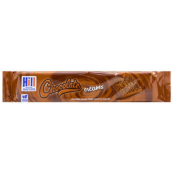 Hill Biscuits Chocolate Creams (150g) are a chocolatey take on the classic custard cream recipe, with a nice chocolatey filling covered with two chocolate biscuit layers. A full flavour chocolatey experience for those with a sweet tooth, or anyone with a chocolate craving!