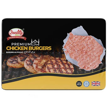Quality Bites 8 Premium Chicken Burgers (440g). Classic and halal Burgers, perfect for lunch or dinner.