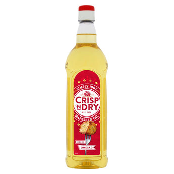 Crisp 'N Dry Rapeseed Oil (1L). Ideal for all frying, baking & salads. High in omega 3 and vitamin E. Suitable for Vegetarians.