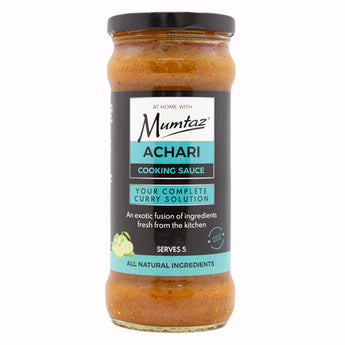 Mumtaz Achari Cooking Sauce (350g). This cooking sauce is so easy-going, it gets on with everything. Your complete curry solution-An exotic fusion of ingredients fresh from the kitchen, made with all-natural ingredients. Serves 5.