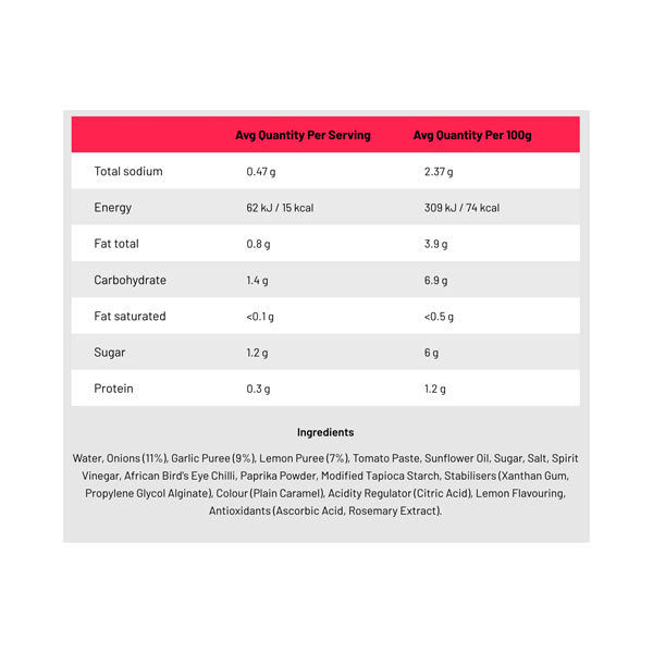 Nandos Peri Peri Marinade Medium 262g offers a perfectly balanced blend of fiery and smoky flavours, ideal for enhancing chicken, seafood, or vegetables. Crafted with authentic African bird’s eye chili, this marinade delivers a medium heat level that adds depth without overwhelming the palate. Its versatile formulation ensures tender, flavorful results whether grilling, roasting, or barbecuing, making it a reliable choice for both home cooks and culinary professionals seeking consistent, vibrant taste.