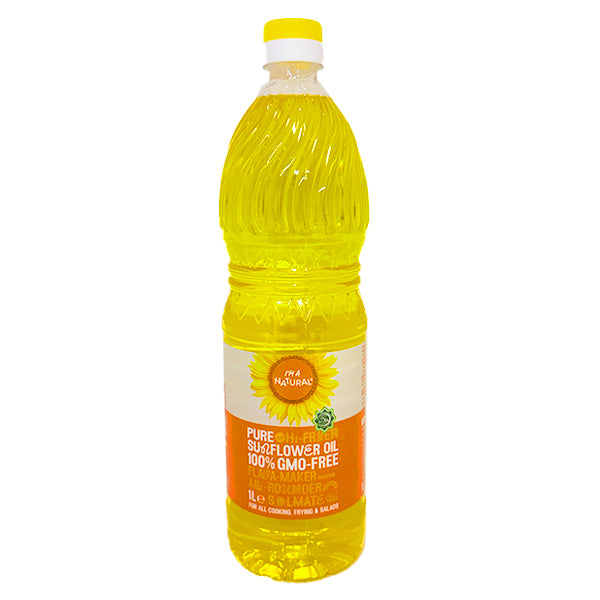 I'M Natural Pure Sunflower Oil 1L is a high-quality cooking oil known for its light taste and versatility. Extracted from pure sunflower seeds, this oil offers a healthy source of unsaturated fats, supporting heart health and balanced nutrition. Its high smoke point makes it ideal for frying, sautéing, and baking, while preserving the natural flavors of your dishes. Perfect for everyday culinary use, this sunflower oil ensures consistent quality and freshness in every bottle.