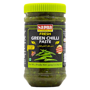 Sapna Fresh Green Chilli paste is a spicy and hot paste. The green chillies are carefully washed and cut into fine pieces-blended with lemon juice, salt and cumin seeds. It is an excellent addition to all your cooking needs in a smaller package of 330g.