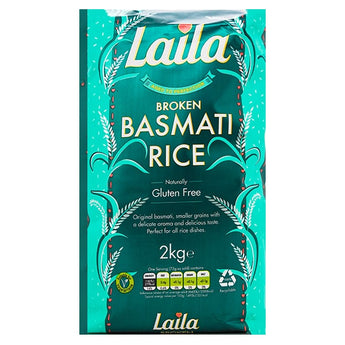 Laila Broken Basmati Rice Gluten Free (2kg). Basmati is a variety of long, slender-grained aromatic rice which is traditionally from the Indian subcontinent. Laila Broken Rice is perfect for Curries, Meat, Vegetables or Fish Dish. It is packed with vitamins and minerals. It has a delicious nutty taste and a beautiful Aromatic Fragrance.