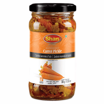 Shan Carrot Pickle (300g) appeals to all taste buds. Mixed with sugar, vinegar, mustard seed these pickled carrots are salty, sweet and a little sour is a zesty and strong flavoured pickle, perfect as an accompanying side.