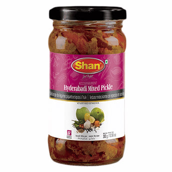 Shan Hyderabadi Mixed Pickle (300g), Shan Hyderabadi Mixed pickle has the perfect mix of Mango, Carrot, Lemon, Chilli and Garlic with a blend of zesty spices which is the perfect accompaniment to everyday meals. Shan Foods was a small company established in 1981.