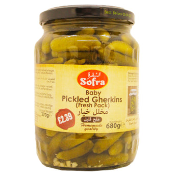 Sofra Baby Pickled Gherkins are the perfect tangy addition to any meal. Made with fresh, hand-picked gherkins and a delicious blend of pickling spices, these gherkins are expertly crafted for a crisp and flavourful bite. With a generous 680g serving size, these gherkins are ideal for sharing with family and friends.