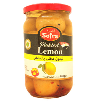 Made from fresh and tangy lemons, Sofra Pickled Lemon is an expertly crafted condiment that adds a bold and zesty flavour to any dish. With a generous 720g portion, enjoy the health benefits of this traditional Middle Eastern preserve in every bite. Perfect for adding a burst of flavour to salads, meats, and more.