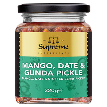 Supreme Mango, Date & Gunda Pickle (320g) is a pickle mix made up of fruit and berries which brings a fragrant and delicious essence to any dish.