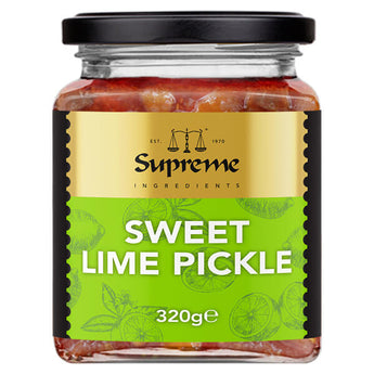 Supreme Sweet Lime Pickle (320g) is a sweet and sour tangy pickle that is an accompanying side to traditional Indian dishes.