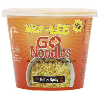 Ko-Lee Go Cup Noodles hot & spicy flavour, quick and easy to make snacks. Delicious soup noodles anytime anywhere. Grab hot water and fork inside, and off you go.