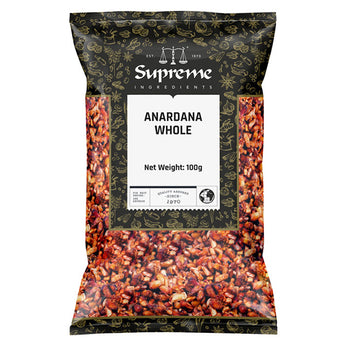 Supreme Anardana Whole (100g). Dried Pomegranate whole, perfect for garnishing dishes or adding flavour. Pomegranate seeds are high in antioxidants, and may play an effective role in the prevention of heart disease and cancer.