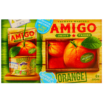 Experience the refreshing taste of Amigo Orange Juice! Our 8 pack of 200ml bottles provide a convenient way to enjoy 100% pure orange juice. With no added sugar or preservatives, each bottle is bursting with essential vitamins and minerals. Quench your thirst while nourishing your body with Amigo Orange Juice.