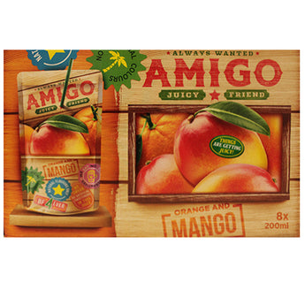 Amigo Orange & Mango Juice is the perfect blend of refreshing and nutritious. With 8x200ml bottles in each pack, you can enjoy the delicious taste of pure mango juice anytime, anywhere. Made with real mangoes, each sip delivers 100% natural goodness. Quench your thirst and boost your health with Amigo Mango Juice.