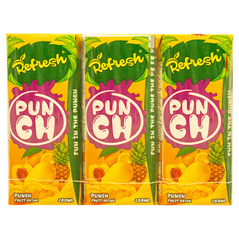 Introducing Refresh Punch Fruit Drink, now available in a convenient 6 x 200ml pack. Made with real fruit juice, this refreshing beverage is perfect for on-the-go hydration. With no added sugars or artificial flavors, you can enjoy the delicious taste guilt-free while staying refreshed and hydrated.
