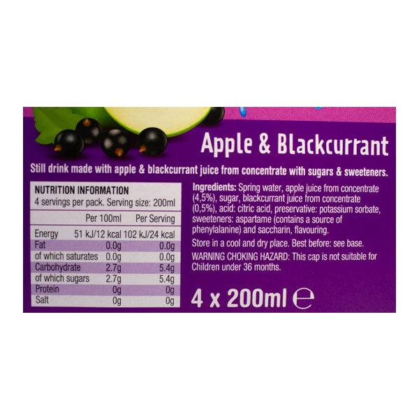 Squeeze It Still Juice Drink Apple & Blackcurrant 4 x 200ml