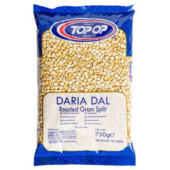 Top Op Daria Dal (750g), Chana dal Roasted Gram Split ,are obtained by roasting chana dal. It gives chickpeas a wonderfully rich and nutty taste. Roasted chana dal is tiny, tough, creamy white with a little aroma or taste and should be crispy..