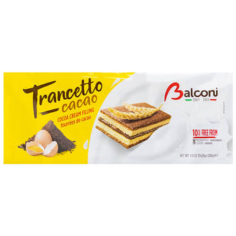 Balconi Trancetto Cacao Cocoa Cream Filling (280g). Free from preservatives, Trancetto Cacao is the perfect choice for a delicious, quality snack. Velvety creamy cocoa filling.