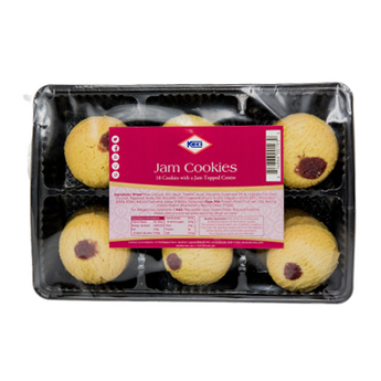 KCB Jam Cookies (200g) 18 Delightful KCB Cookies with a Jam Topped Centre combining the crunch and flavour of the biscuit and the sweetness and softness of the jam.