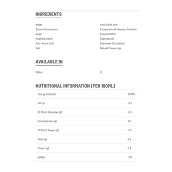 Crucials Tomato Ketchup is a 500ml bottle of tangy, rich ketchup made with fresh tomatoes. With 100% natural ingredients, it adds a burst of flavor to any meal. Perfect for burgers, fries, and more, our ketchup is a must-have condiment for any kitchen. Taste the difference with Crucials Tomato Ketchup.