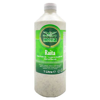 Heera Raita Sauce (1L) is a smooth, creamy yoghurt and mint sauce with a sweet flavour. Great with pakoras, samosas and bhajis.