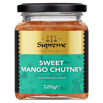 Supreme Sweet Mango Chutney (320g), is a sweet and tasty condiment famous for going alongside poppadoms and other savoury snacks.