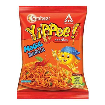 Sunfeast Yippee Magic Masala Noodles (70g) are Long, non-sticky noodles making it slurpy delicious. A delectable blend of Indian spices for a magical masala taste with the goodness of real vegetables and a great source of 5 essential nutrients – Calcium, Iron, Vit C, Folic Acid, Protein. Perfect for a quick meal or an evening snack with no artificial flavours and colours.