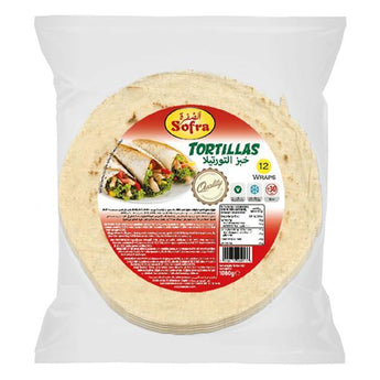 Sofra Tortilla Wraps (12pc) (320g) are 12 large Sofra Tortillas for making wraps. Light & Soft. Pressed from fresh dough balls for a soft flour tortilla.