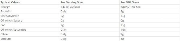 Mixed Vegetable 60-65%, (Mango, Carrot, Lime, Chilli), Soyabean Oil, Salt, Water, Red Chilli, Acetic Acid (E-260), Fenugreek, Fennel, Aniseed, Cumin Seed, Turmeric, Onion Seed