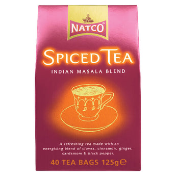 Natco Spiced Tea (125g) (40 Tea Bags) is an Indian masala blend of refreshing and flavourful spiced tea. Made with a mix of cloves, cinnamon, cardamom, bay leaves and black pepper, the masala taste is excellent for any time throughout the day, energising your soul and keeping you calm and relaxed.