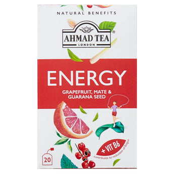 Ahmad Tea Energy 20 Tea Bags (150g) has a mix of grapefruit, mate and guarana seed to give a burst of energy. The herbal tea is delicious and fruity.