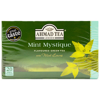 Ahmad Tea Mint Mystique Green Tea (20 Foil Tea Bags) (40g) is a fantastic green tea blend, topped with mint leaves giving a full flavour minty experience. A refreshing brew, keeping you calm and soothed.