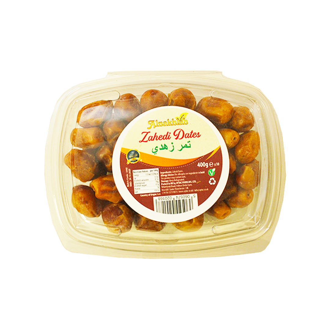 Indulge in the natural sweetness of Alnakhlah Zahedi Dates. These premium quality dates are handpicked from the finest trees and are packed with essential nutrients, making them a perfect addition to your healthy lifestyle. Each 400g pack is carefully selected and processed to ensure maximum freshness and flavour.