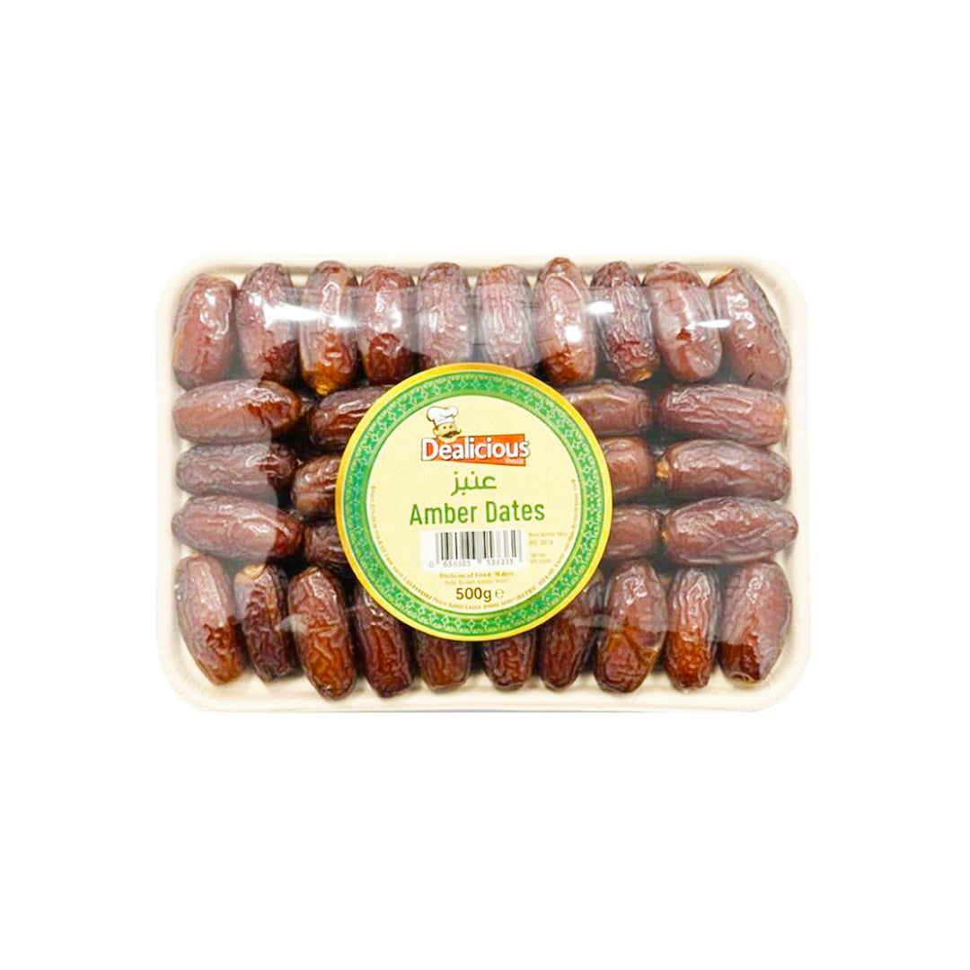 Dealicious Mealz Amber Dates are premium quality dried dates sourced for their rich, caramel-like flavour and naturally soft texture. Each 500g pack delivers a concentrated source of natural sugars, fibre, and essential minerals including potassium and magnesium. These versatile dates work equally well as a convenient snack, baking ingredient, or energy boost. Their amber hue indicates optimal ripeness and flavour development. Perfect for those seeking wholefood nutrition without additives or preservatives.