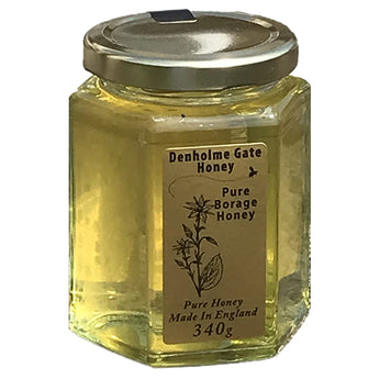 Denholme Gate Honey - 340g. This borage honey is formed during the spring when bees forage on the vivid yellow fields of rapeseed oil, as well as apple and cherry blossom and wild flowers such as crocus, dandelions and bluebells. Our Pure Yorkshire Spring Honey has a mild, creamy flavour and is naturally set. It’s delicious eaten by the spoonful, as a natural sweetener in tea or to make a round of sticky honey sandwiches.