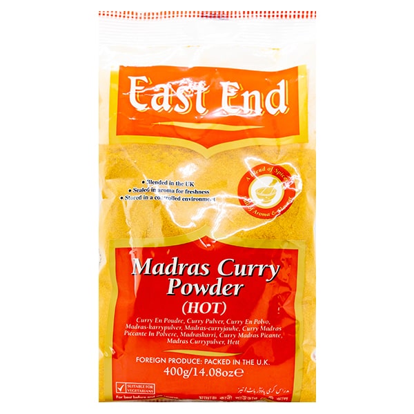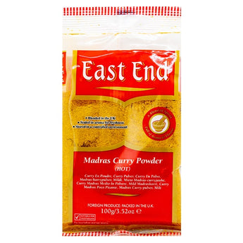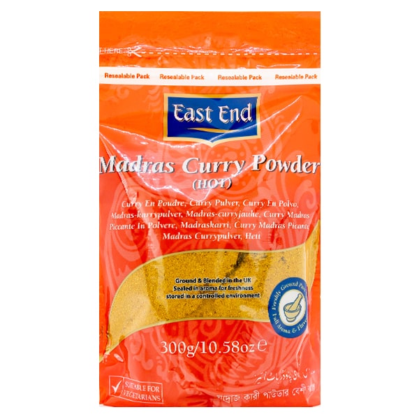 East End Madras Curry Powder (Hot) (Available In 3 Different Sizes) (100g, 300g or 400g). East End Madras hot curry powder is a blend of spices with full of aroma and flavour. Madras Curry Powder is spicier in taste compared to standard Curry Powder.