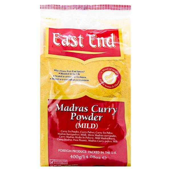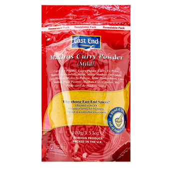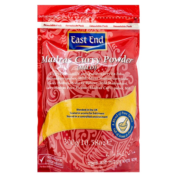 East End Madras Curry Powder (Mild) (Available In 3 Different Sizes) (100g, 300g or 400g). East End Madras Mild curry powder is a blend of spices with full of aroma and flavour. Madras Curry Powder has a mild heat taste compared to standard Curry Powder.