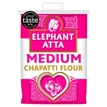 Our Medium Elephant Atta (5kg) delivers the best of both worlds – taste and nutrition. We have blended our wholemeal flour with our soft white flour to achieve the perfect blend that makes light and fluffy chapattis packed full of taste and nutrients. Elephant Atta Medium is the nation’s favourite atta and has been awarded 2 gold stars at the ‘Great Taste Awards 2017.