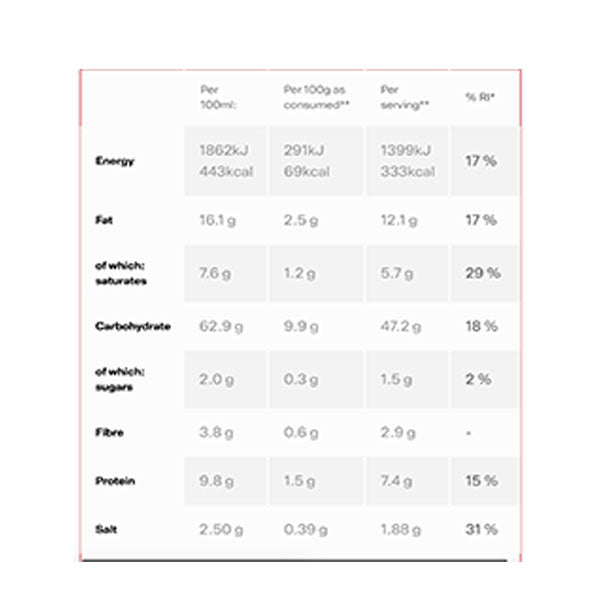 Nutritional Information & Ingredients