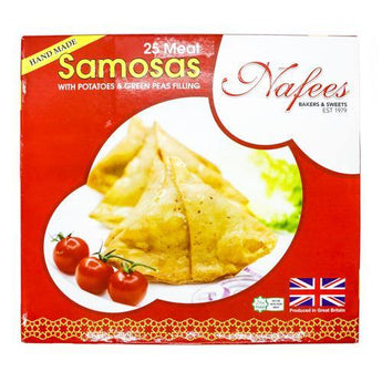 {"id":4689319657562,"title":"Nafees 25 Meat Samosas","handle":"nafees-25-meat-samosas","description":"\u003ch2\u003eNafees 25 Meat Samosas - 2.5kg\u003c\/h2\u003e\n\u003cp\u003eNafees 25 meat samosa are a deep fried South Asian snack that is an all-time favourite. Perfect with vegetables or meat the samosa is the ideal snack for all guests.\u003cbr\u003e\u003cbr\u003eHandmade, succulent and authentically spiced with a meat filling, wrapped in a deliciously light pastry. These delicious samosa are made fresh on site using only the finest ingredients.\u003c\/p\u003e","published_at":"2020-05-18T18:28:58+01:00","created_at":"2020-05-18T18:28:58+01:00","vendor":"SaveCo Online","type":"Frozen","tags":["Brand_Nafees","Eid","Locked","Ramadan","Type_Frozen Samosas"],"price":1199,"price_min":1199,"price_max":1199,"available":true,"price_varies":false,"compare_at_price":null,"compare_at_price_min":0,"compare_at_price_max":0,"compare_at_price_varies":false,"variants":[{"id":32335154708570,"title":"Default Title","option1":"Default Title","option2":null,"option3":null,"sku":"130","requires_shipping":true,"taxable":false,"featured_image":null,"available":true,"name":"Nafees 25 Meat Samosas","public_title":null,"options":["Default Title"],"price":1199,"weight":2500,"compare_at_price":null,"inventory_management":"shopify","barcode":"5060336351790","requires_selling_plan":false,"selling_plan_allocations":[]}],"images":["\/\/savecobradford.co.uk\/cdn\/shop\/products\/nafees25meatsamosas.jpg?v=1623937958"],"featured_image":"\/\/savecobradford.co.uk\/cdn\/shop\/products\/nafees25meatsamosas.jpg?v=1623937958","options":["Title"],"media":[{"alt":"Nafees 25 Meat Samosas @ SaveCo Online Ltd","id":7478468280410,"position":1,"preview_image":{"aspect_ratio":1.0,"height":500,"width":500,"src":"\/\/savecobradford.co.uk\/cdn\/shop\/products\/nafees25meatsamosas.jpg?v=1623937958"},"aspect_ratio":1.0,"height":500,"media_type":"image","src":"\/\/savecobradford.co.uk\/cdn\/shop\/products\/nafees25meatsamosas.jpg?v=1623937958","width":500}],"requires_selling_plan":false,"selling_plan_groups":[],"content":"\u003ch2\u003eNafees 25 Meat Samosas - 2.5kg\u003c\/h2\u003e\n\u003cp\u003eNafees 25 meat samosa are a deep fried South Asian snack that is an all-time favourite. Perfect with vegetables or meat the samosa is the ideal snack for all guests.\u003cbr\u003e\u003cbr\u003eHandmade, succulent and authentically spiced with a meat filling, wrapped in a deliciously light pastry. These delicious samosa are made fresh on site using only the finest ingredients.\u003c\/p\u003e"}