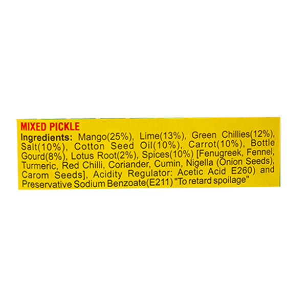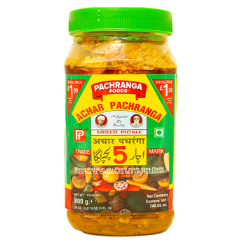 Pachranga Mixed Pickle 800g offers a traditional blend of five carefully selected vegetables, expertly spiced and preserved to enhance any meal. This pickle balances tangy and spicy flavors, adding depth and character to your dishes. Ideal for complementing a variety of cuisines, it delivers authentic taste with each serving, making it a versatile addition to your pantry.