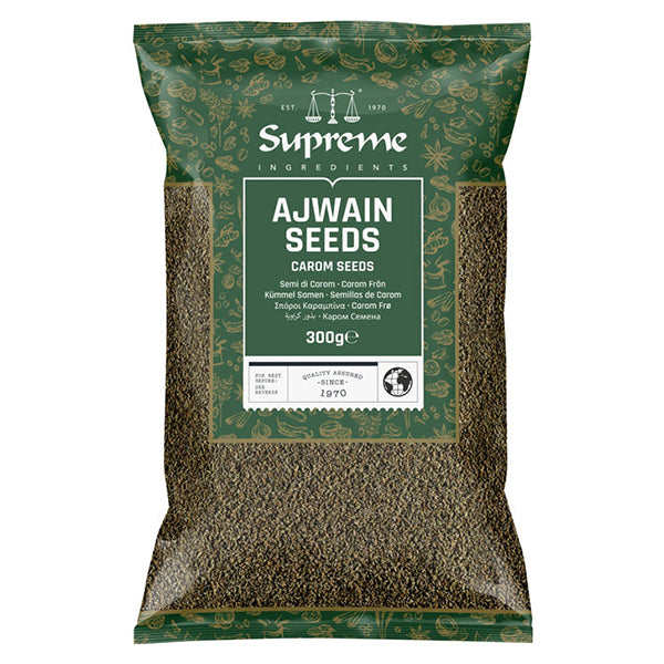 Supreme ajwain seeds (100g, 300g or 1kg) is mainly used to flavour pastries and breads like samosa shells, parathas and rotis. It's also used as a seasoning for potato curries and as a tempering for dals and pakoras.
